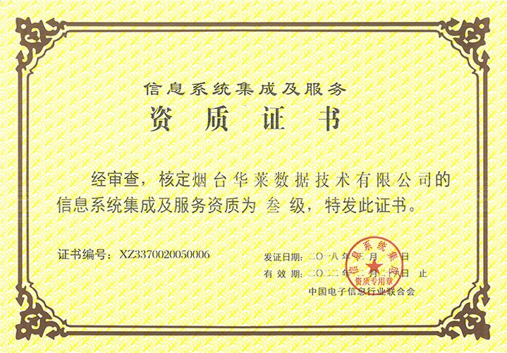 信息系統(tǒng)集成及服務資質(zhì)證書