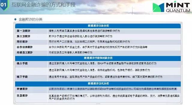 用技術(shù)去做反欺詐都是有針對(duì)性的,在進(jìn)行反欺詐時(shí)需要知道欺詐的類型,下面是欺詐分類,有第一方欺詐,第三方欺詐等。第三方欺詐就是欺詐分子通過非法途徑獲取他人身份進(jìn)行騙貸等欺詐行為;線下欺詐是通過信用卡偷盜,盜取其他用戶賬戶資金的行為或者通過偽造申請(qǐng)材料,線下面對(duì)面申請(qǐng)的欺詐行為;申請(qǐng)欺詐是以欺詐為目的,申請(qǐng)個(gè)人信貸賬戶以騙取銀行或P2P平臺(tái)等機(jī)構(gòu)資金的行為??杉?xì)分為虛假身份申請(qǐng)和虛假資料申請(qǐng)(這在反欺詐中很重要,將壞人擋于門外);交易欺詐對(duì)數(shù)據(jù)實(shí)時(shí)性比較高。欺詐風(fēng)險(xiǎn)是惡意的,自始至終就是不想還貸,信用風(fēng)險(xiǎn)更多的是一種還款意愿或還款能力導(dǎo)致無法還款。信用風(fēng)險(xiǎn)主要是看征信、數(shù)據(jù),建模型進(jìn)行處理,計(jì)算欺詐概率,而欺詐是要分清黑白。