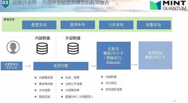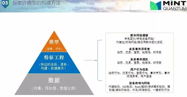 我們常用的一些反欺詐的數(shù)據(jù)和方法有:(1)身份驗(yàn)證,這個(gè)是非常重要的,身份驗(yàn)證在中國(guó)很偉大,如中國(guó)解決了第三方欺詐的問題。因?yàn)橹袊?guó)手機(jī)實(shí)名認(rèn)證,有些時(shí)候你很難去做假,這樣我們可以交叉驗(yàn)證,這樣就提高了欺詐的成本;(2)法院/征信信息,內(nèi)部黑名單,有公司會(huì)專門整理這些信息,可以公開給我們使用。用戶信息整合,通過各公司間信息碰撞,規(guī)則匹配,如果發(fā)現(xiàn)過去欺詐行為就不給他提供金融服務(wù);(3)模型,評(píng)估用戶行為,進(jìn)行規(guī)則評(píng)判他這種行為是不是欺詐,如何減少錯(cuò)殺準(zhǔn)確抓住欺詐人員。