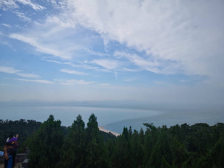第三天上午,這次旅程的終點站長島南線烽山林海。站在烽山頂處登高遠眺,長山列島歷歷在目,船姿鷗影盡收眼底。下山途經(jīng)林海公園最有意義的景觀——黃渤海交匯處。在這里看到了一海碧水分為兩個世界,涇渭分明。